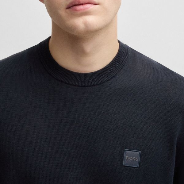 • Het t-shirt van Boss in de kleur navy is gemaakt van katoen en wol.