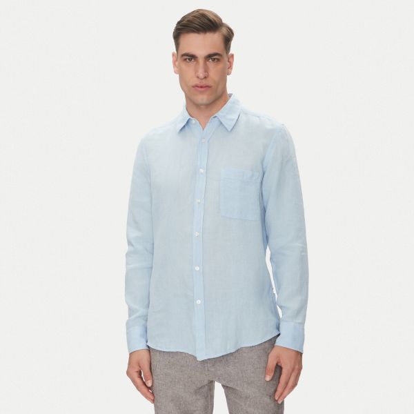 • Het overhemd van Boss in de kleur licht blauw is gemaakt van linnen.