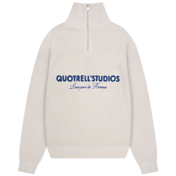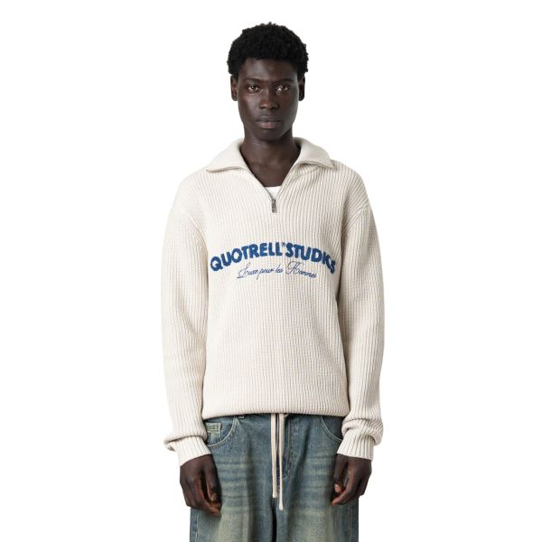 Cotton Merino Quarter Zip Sweater Grijs