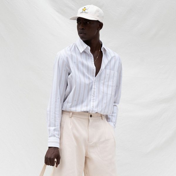 • Het overhemd van Bram's Fruit in de kleuren wit en beige is gemaakt van katoen.