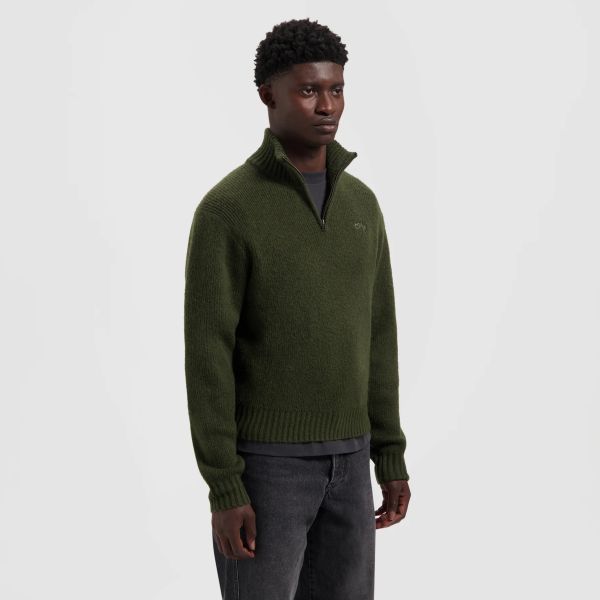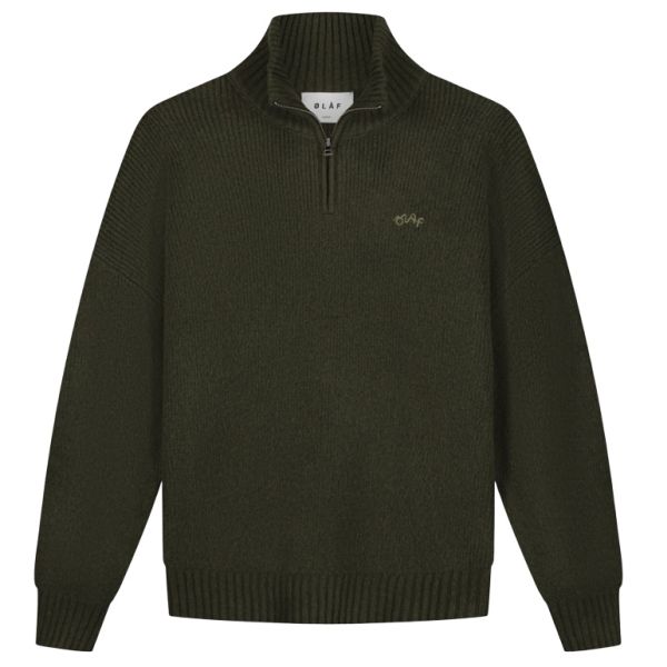 Olaf Signature Knitted Zip Mock Sweater Donker Groen