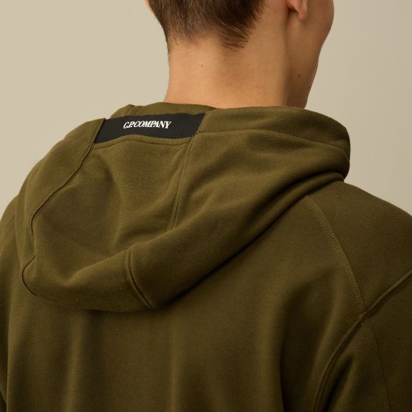 CP Company Diagonal Raised Fleece Lens Hoodie Donker Groen