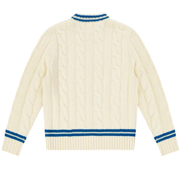 Bye Cable Knit Wool Cricket Sweater Off White/Blauw