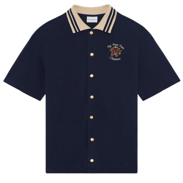 Drôle De Monsieur Slogan Rose Piqué Overhemd Navy