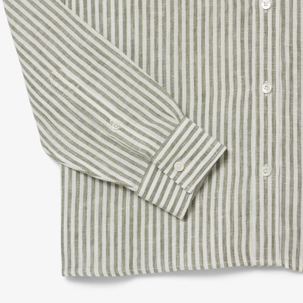 Lacoste Striped Linen Overhemd Donker Groen/Wit