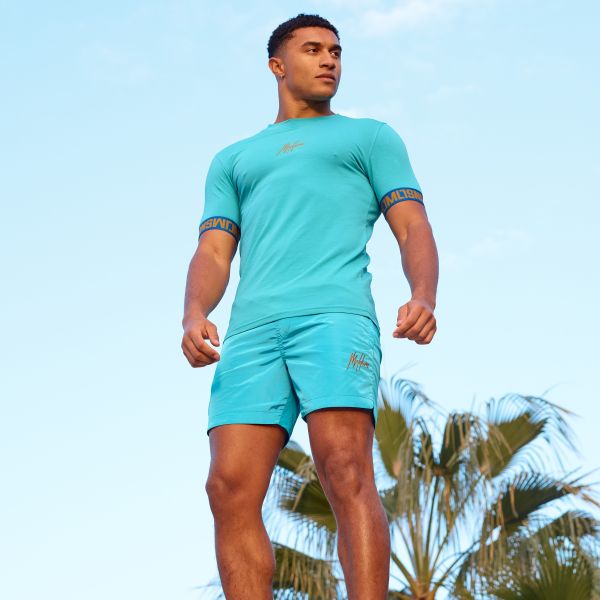 • Het t-shirt van Malelions in de kleur blauw is gemaakt van katoen en elastaan.