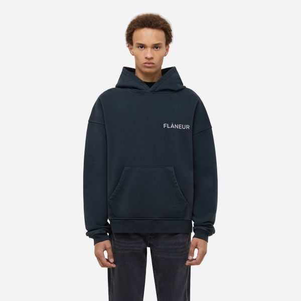 Flâneur Double Logo Washed Hoodie Zwart