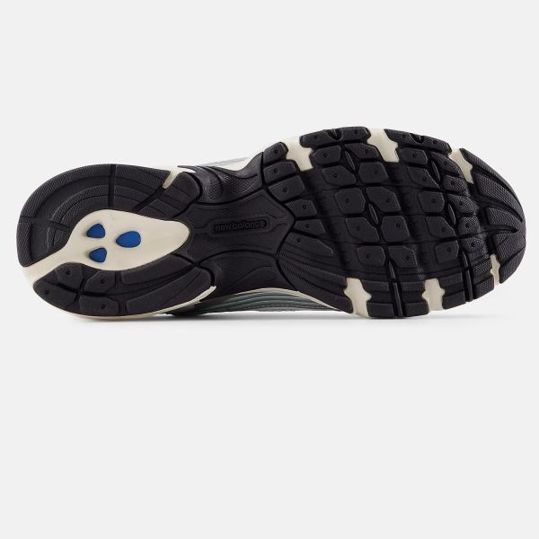 • De sneaker van New Balance in de kleuren zilver en groen is gemaakt van leer, textiel en rubber.