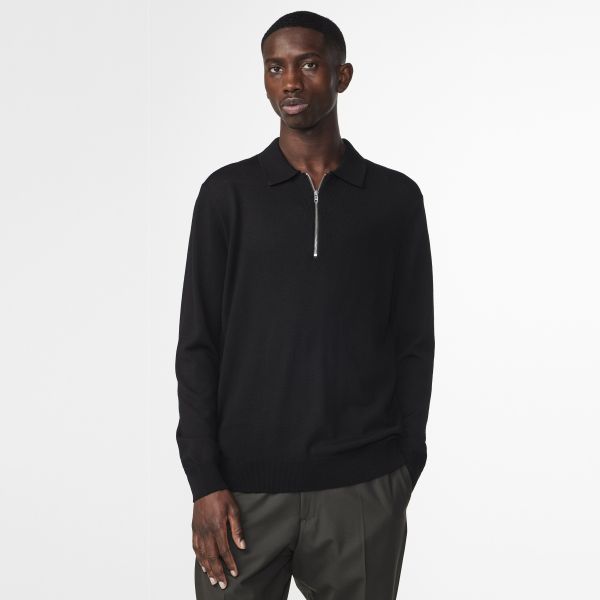 NN.07 Sergio Zip Longsleeve Polo Zwart