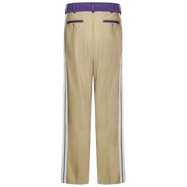 • Broek met witte strepen op de pijpen.