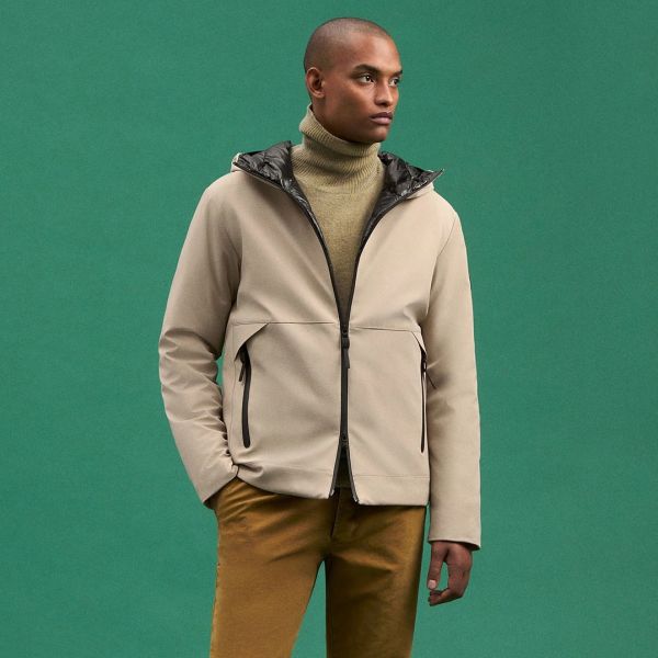 • De jas van Peuterey in de kleur beige is gemaakt van nylon, polyester en elastaan.