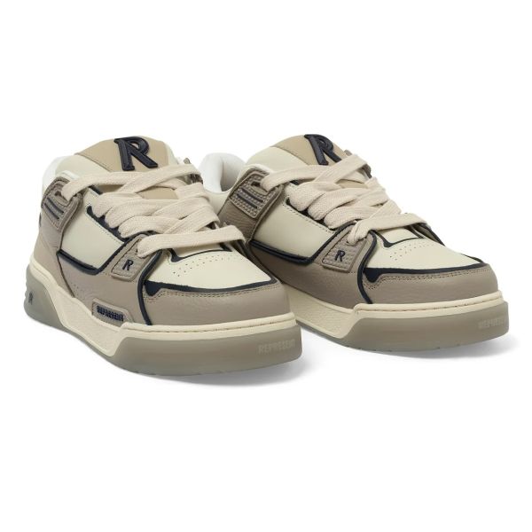 • De sneaker van Represent in de kleuren grijs en beige is gemaakt van leer.