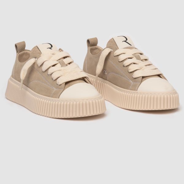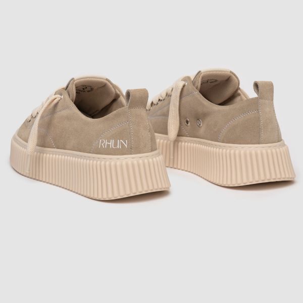 • De sneaker van Rhun in de kleur beige is gemaakt van canvas.