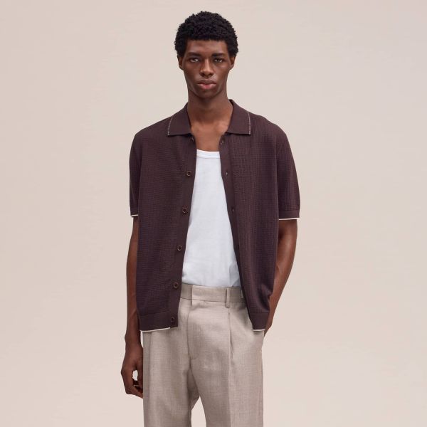 • Voorzien van een knoopsluiting en korte mouwen.