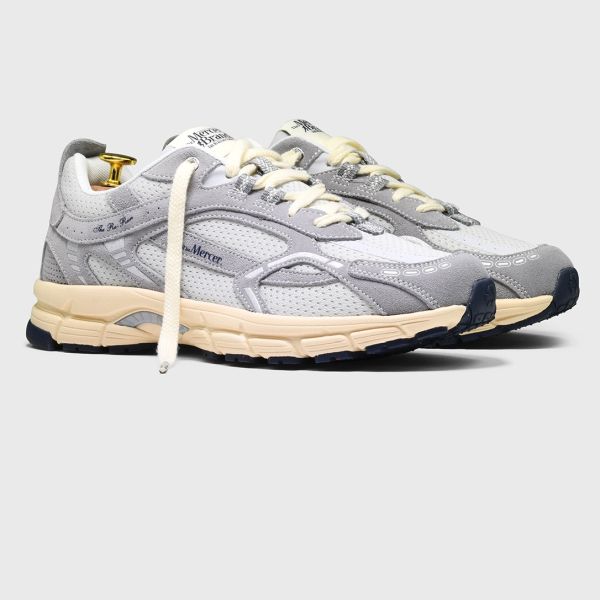 • De sneaker van Mercer Amsterdam in de kleur grijs is gemaakt van leer en mesh.