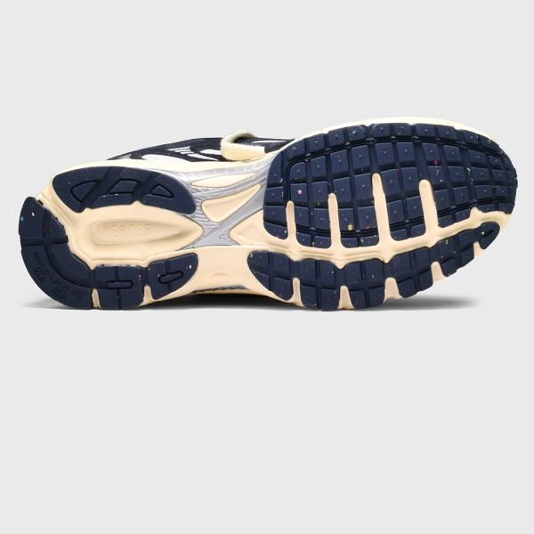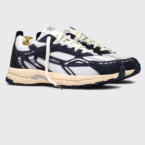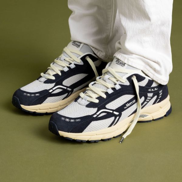 • De sneaker van Mercer Amsterdam in de kleur navy is gemaakt van leer en mesh.