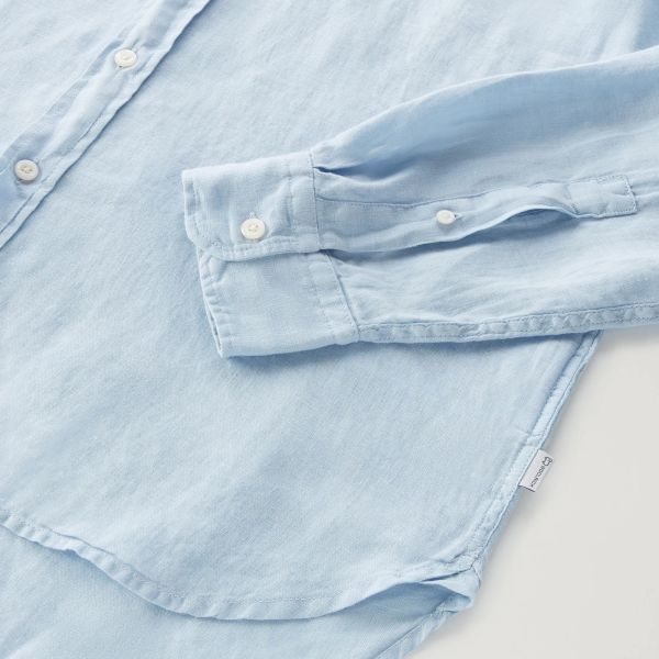 • Het overhemd van Woolrich in de kleur licht blauw is gemaakt van linnen.