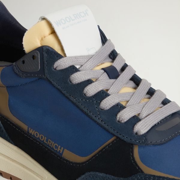 • De sneaker van Woolrich in de kleur navy is gemaakt van leer en polyamide.