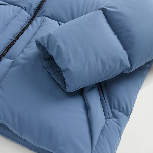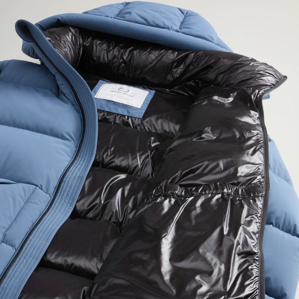 • De jas van Woolrich in de kleur blauw is gemaakt van polyamide en elastaan.